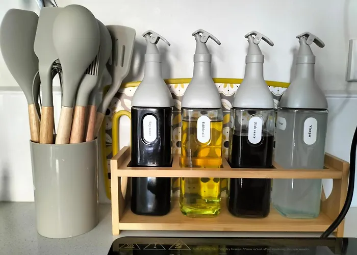 客房内配有丰富的厨房设施,其中还包括微波炉 和电子热水壶.